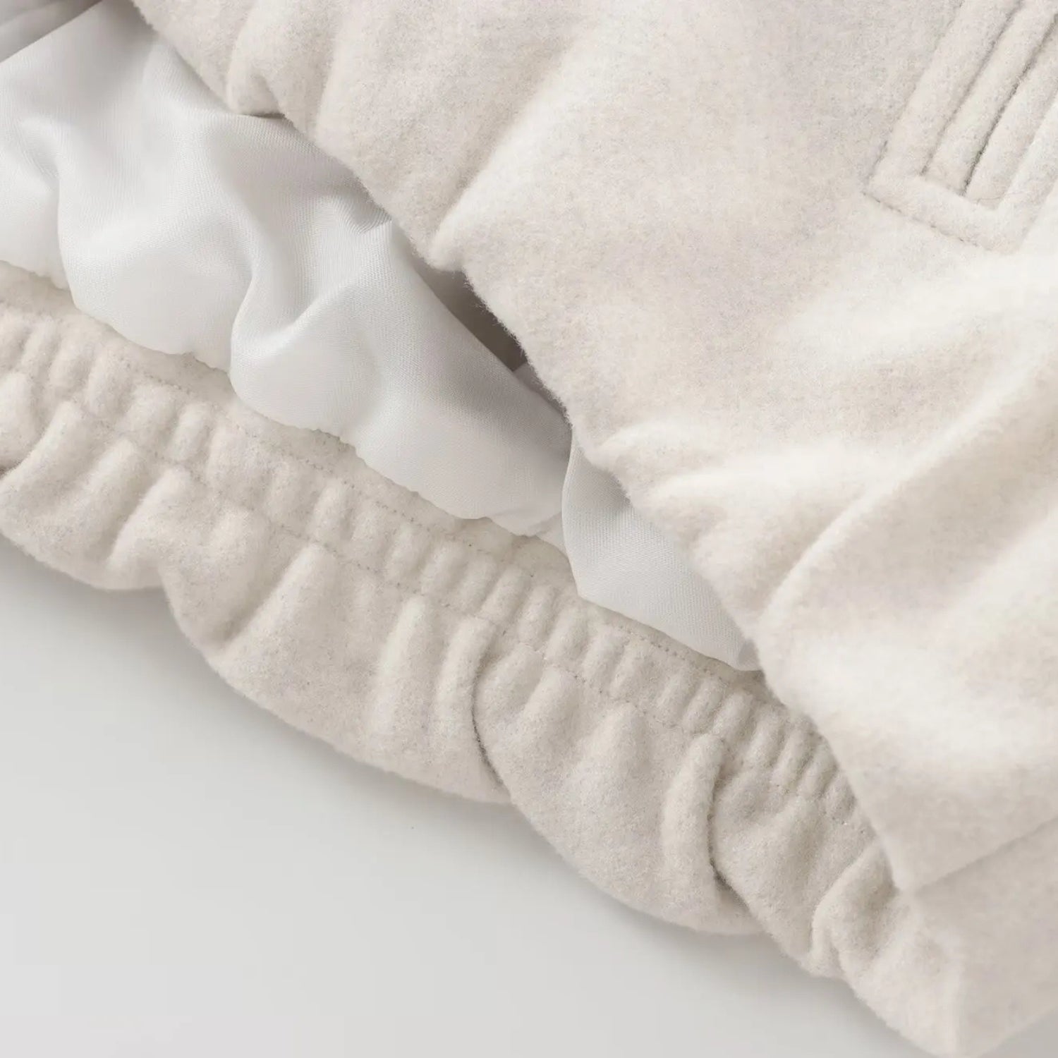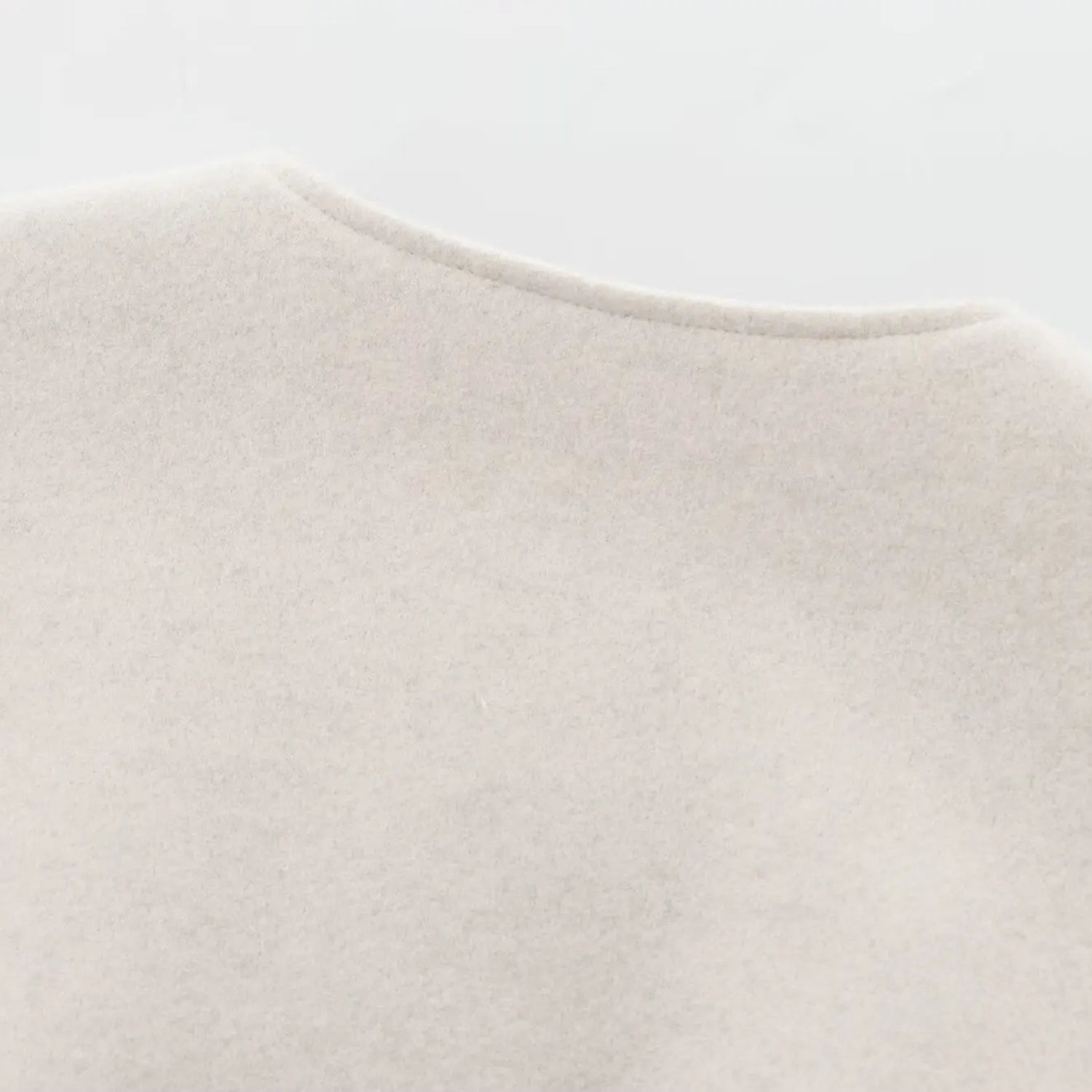Update your transitional-season wardrobe with this cropped pilot jacket — a clean, minimalist take on a streetwear staple. Crafted from a soft polyester blend, this medium-weight zip-up coat features a round neckline, dropped shoulders, and subtle volume through the sleeves and hem for a relaxed yet structured silhouette. Its collarless design and understated finish make it a versatile layering piece, equally suited to off-duty looks and casual city styling. Designed for comfort and quiet confidence, it’s the go-to jacket for cooler spring and autumn days.